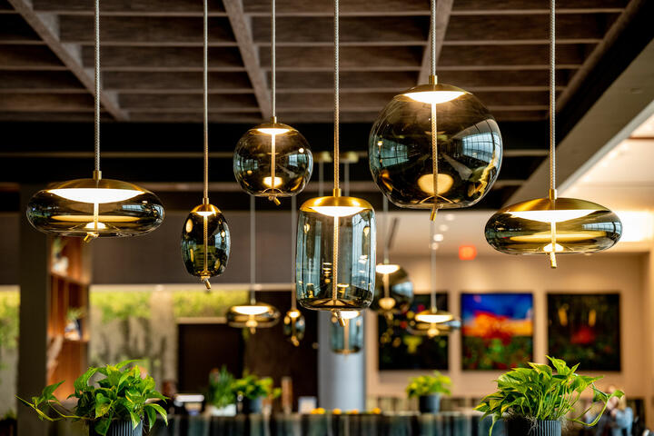 Artwork in the Club gives guests a gallery-going experience, and many of the pieces are inspired by Southern emblems and created by artists local to Atlanta. Behind the food buffet is a custom tile mural of greenery – reminiscent of Atlanta’s nickname the “City in a Forest.” Atlanta-based muralist, Ryan Coleman, created the soaring mural guests will see as they embark on the elevator – note the magnolias and dogwoods in the piece, two of Georgia’s flowering trees. Photographs by Pam Moxley feature soft and dreamlike sepia-toned photographs that evoke southern summers and nostalgia.