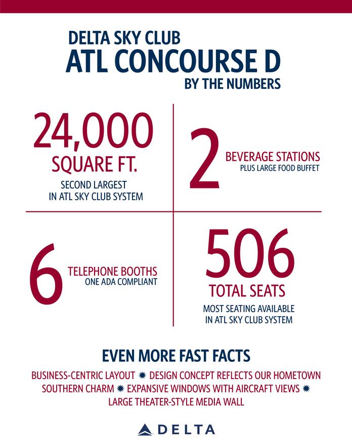 This state-of-the-art Club is part of Delta's ongoing commitment to enhancing the travel experience for our customers traveling through Atlanta; this investment includes the expansion of Concourse D, adding more gates and enlarging the overall footprint of the concourse to accommodate larger aircraft, improve passenger flow and further elevate Delta in Atlanta. In addition to the D expansion, the Delta Sky Clubs on Concourses A and C will also receive refreshes.